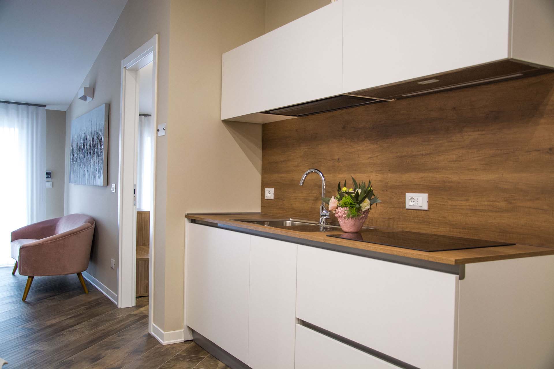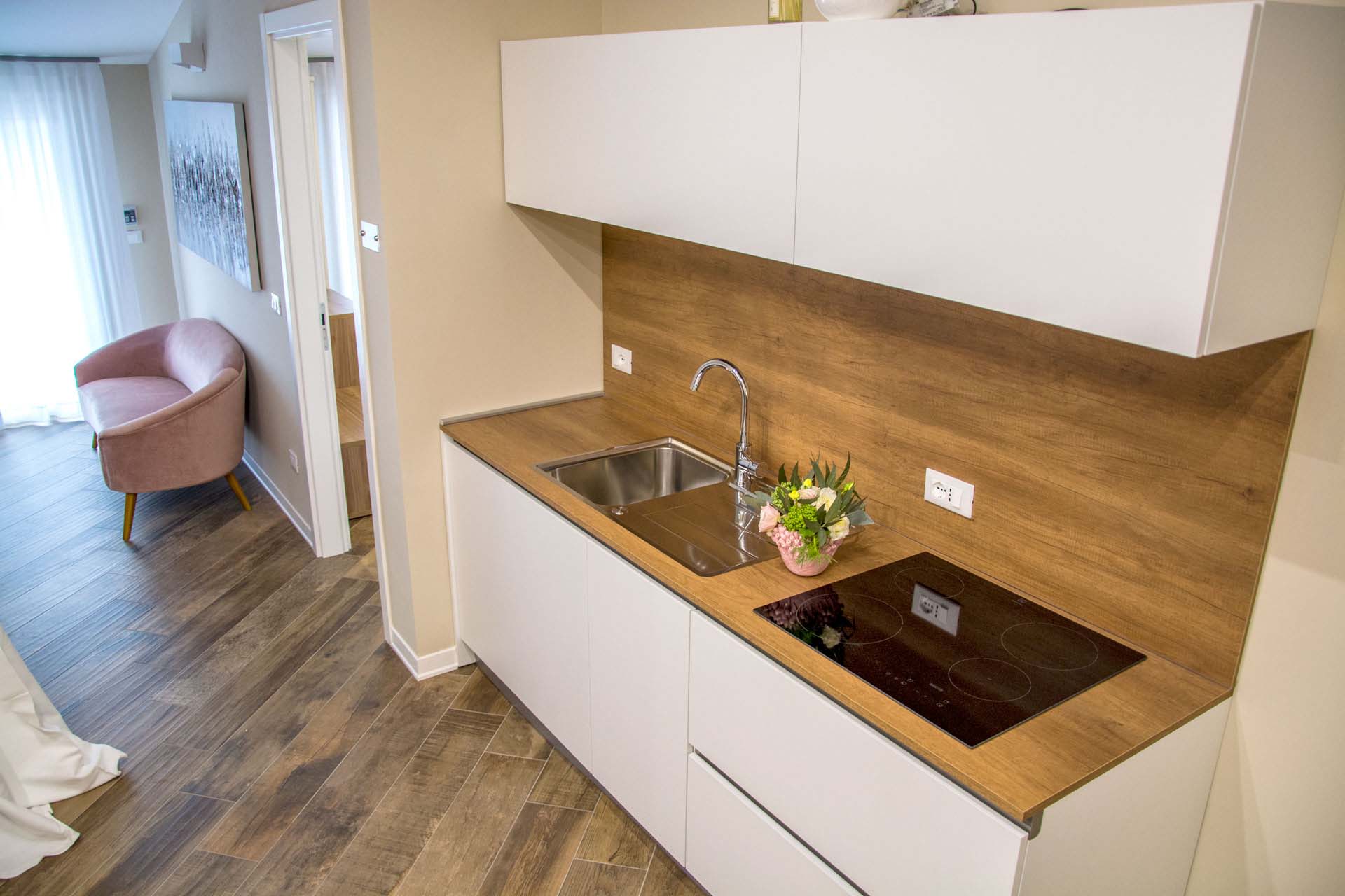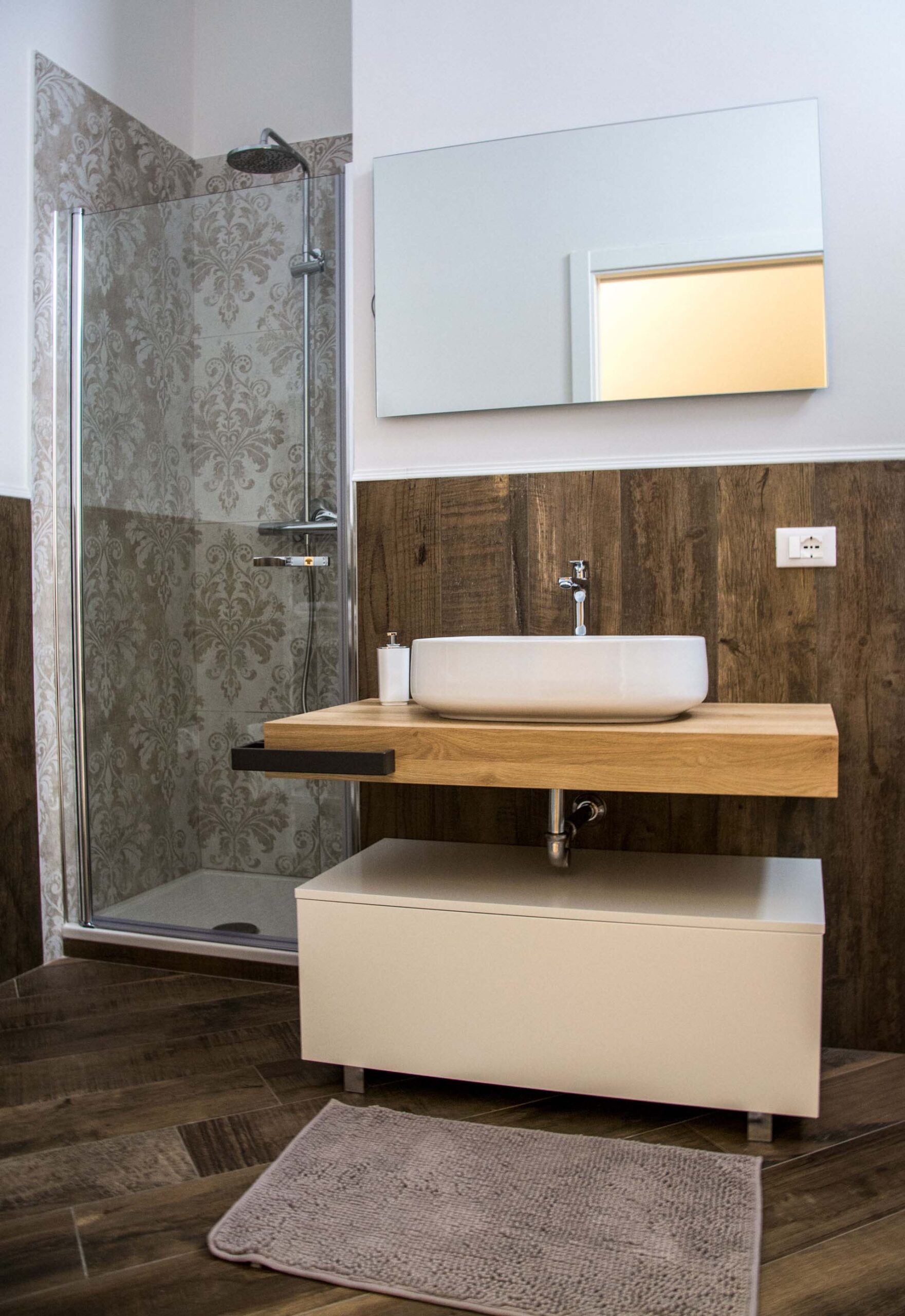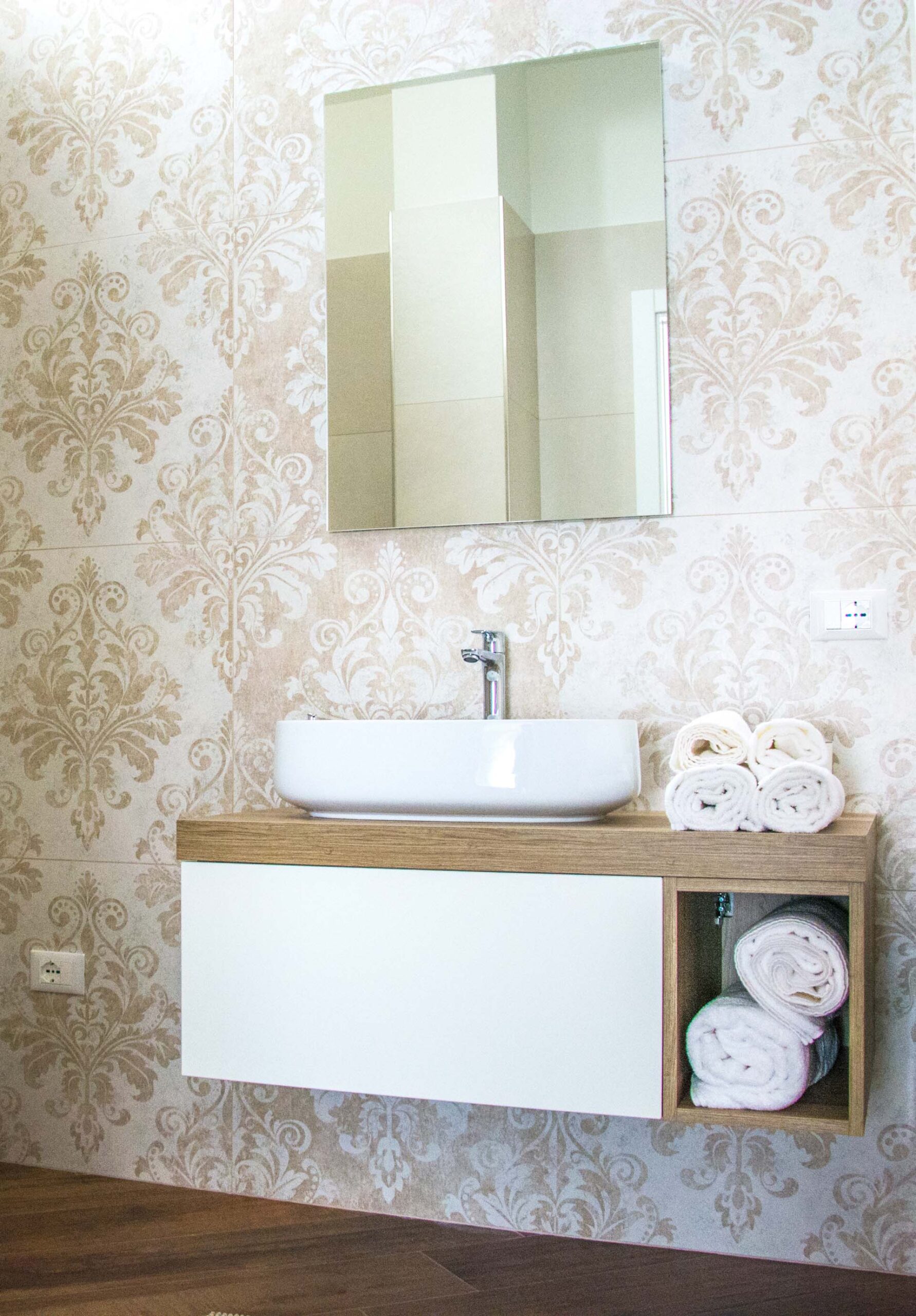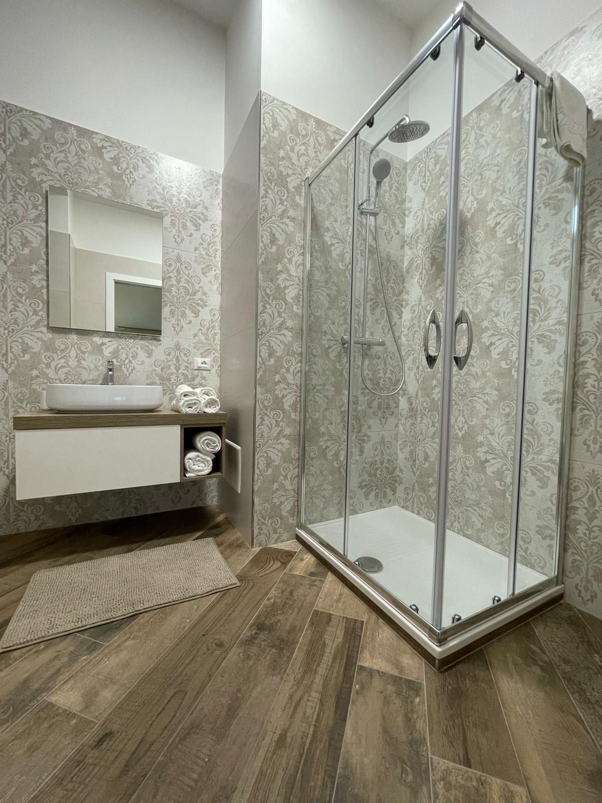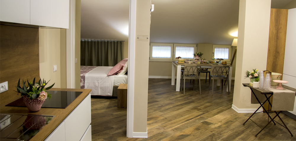 è una camera di circa 18 mq, provvista di ampia finestra, letto matrimoniale con testiera imbottita, armadio, scrivania con sedia, appoggia valigie, bagno in camera, finestrato,