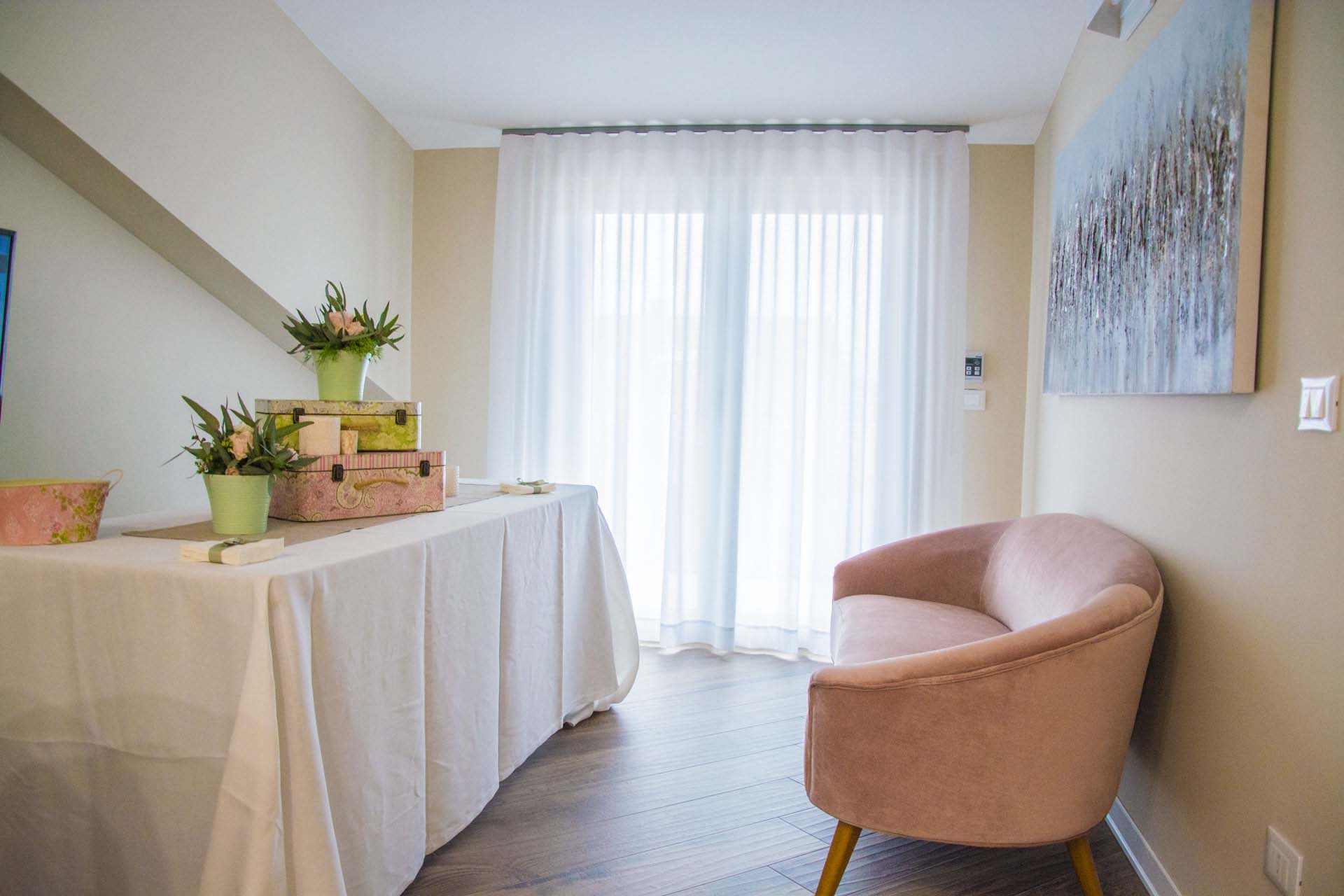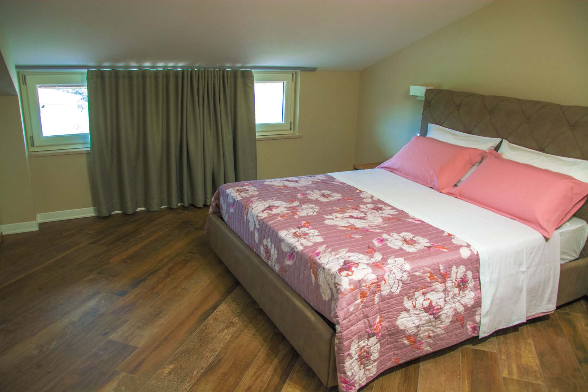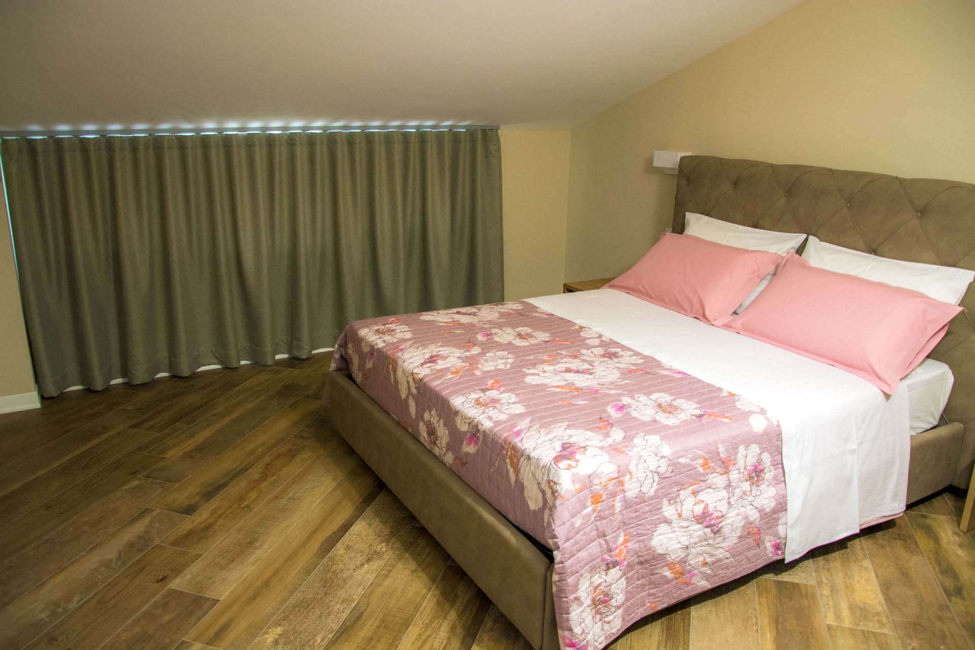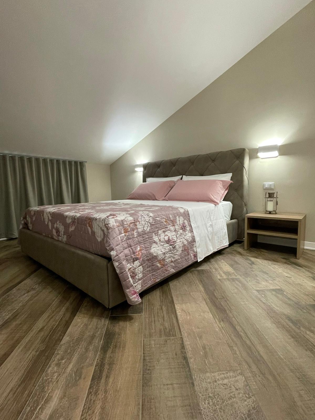 è una camera di circa 20 mq, con letto matrimoniale, armadio doppia anta, scrivania con sedia, appoggia valigie e comodini. Provvista di balcone con affaccio su strada principale